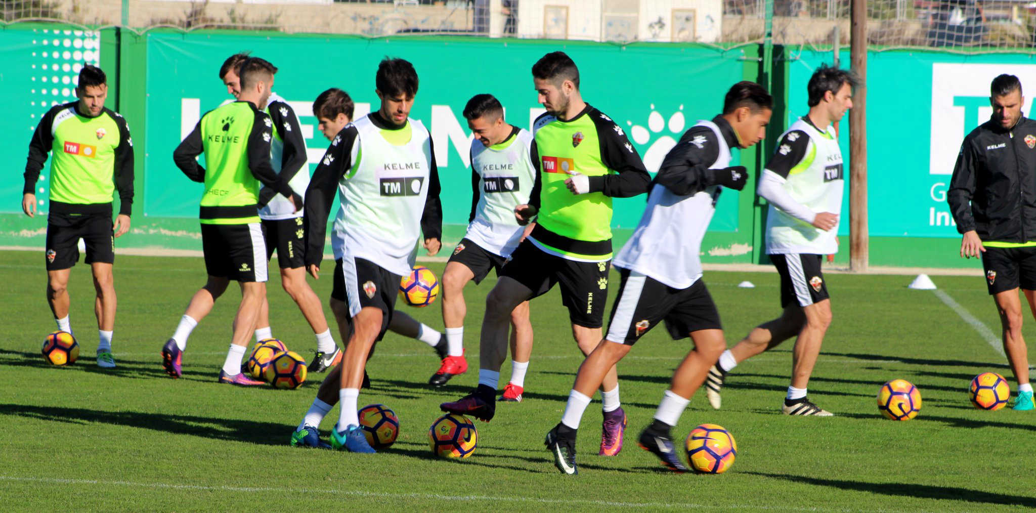 La plantilla ilicitana se ejercitaba en dos grupos y entre los que saltaron al campo de entrenamiento estaban todos aquellos que no jugaron en Oviedo además de los dos atacantes, quienes completaron la sesión con normalidad.