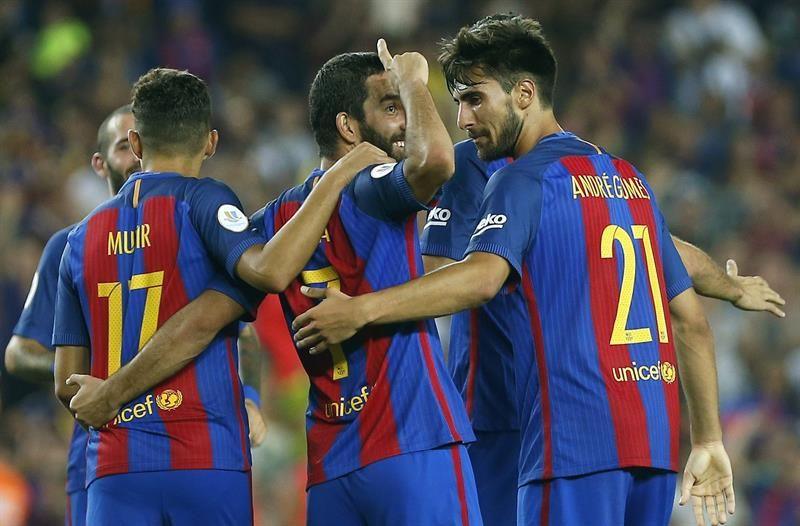 3 - Barcelona: Bravo; Aleix Vidal, Mascherano, Umtiti, Digne (Jordi Alba, min.61), André Gomes, Sergio Busquets (Samper, min.73), Denis Suárez (Rakitic, min.73), Messi, Munir y Arda.