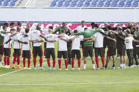 En esta sesión participaron 22 de los 24 futbolistas convocados, ya que el portero Anthony Lopes y el defensa Ricardo Carvalho no llegaron ayer a Lisboa por problemas con sus vuelos.