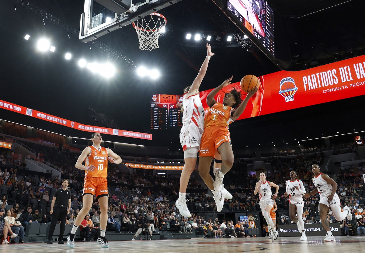 El equipo saltó a la pista con Yvonne Anderson, Elena Buenavida, Leo Fiebich, Raquel Carrera y Khaalia Hillsman. Las defensas se impusieron en el inicio del partido, con acierto bajo y marcador igualado. Las rotaciones llegaron rápido desde el banquillo y trajeron consigo un punto más de energía. El parcial local de 7-0 que ponía un +6 para Valencia Basket, provocaba el tiempo muerto de Suso Garrido. Giomi anotaba a continuación, pero las taronjas se mantuvieron por delante, pese al poco acierto en segundas oportunidades, para finalizar el primer cuarto 6 arriba.