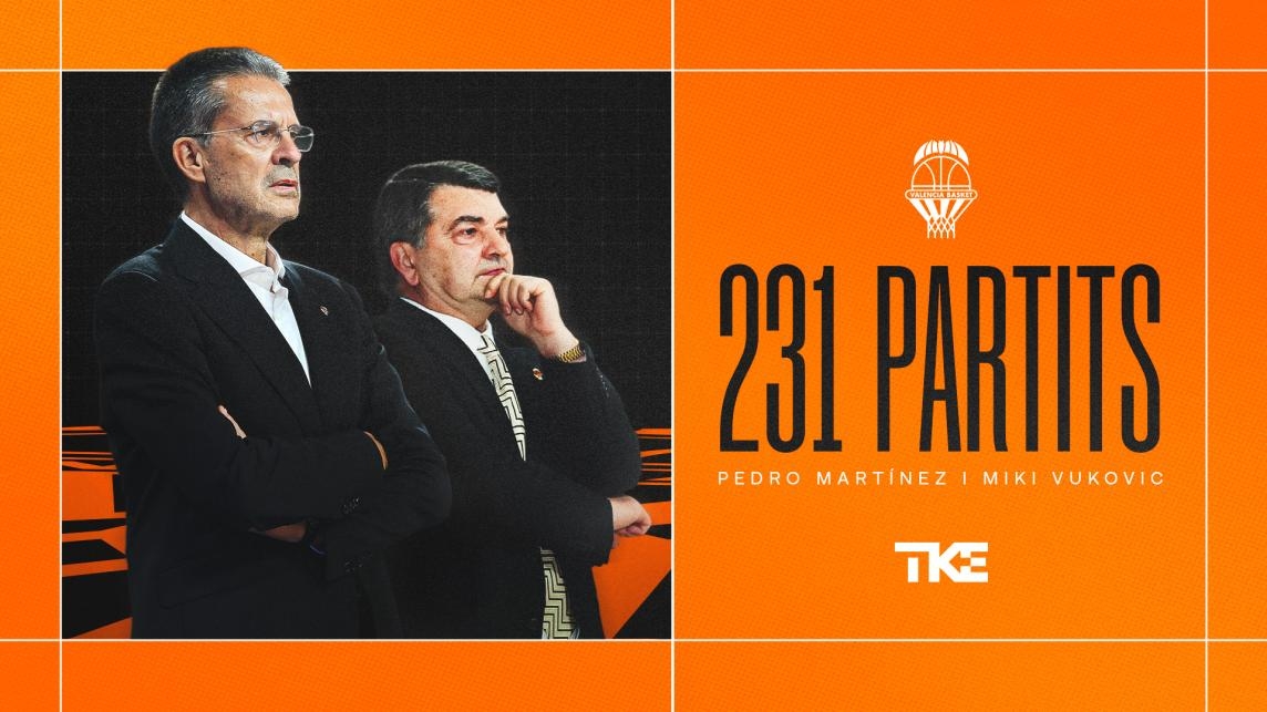 VALÈNCIA. El entrenador Pedro Martínez está dirigiendo esta tarde en la pista del Real Madrid su partido número 231 al frente del primer equipo masculino de Valencia Basket, una cifra que le permite igualar con Miki Vukovic en la primera posición en el histórico de encuentros como técnico principal.