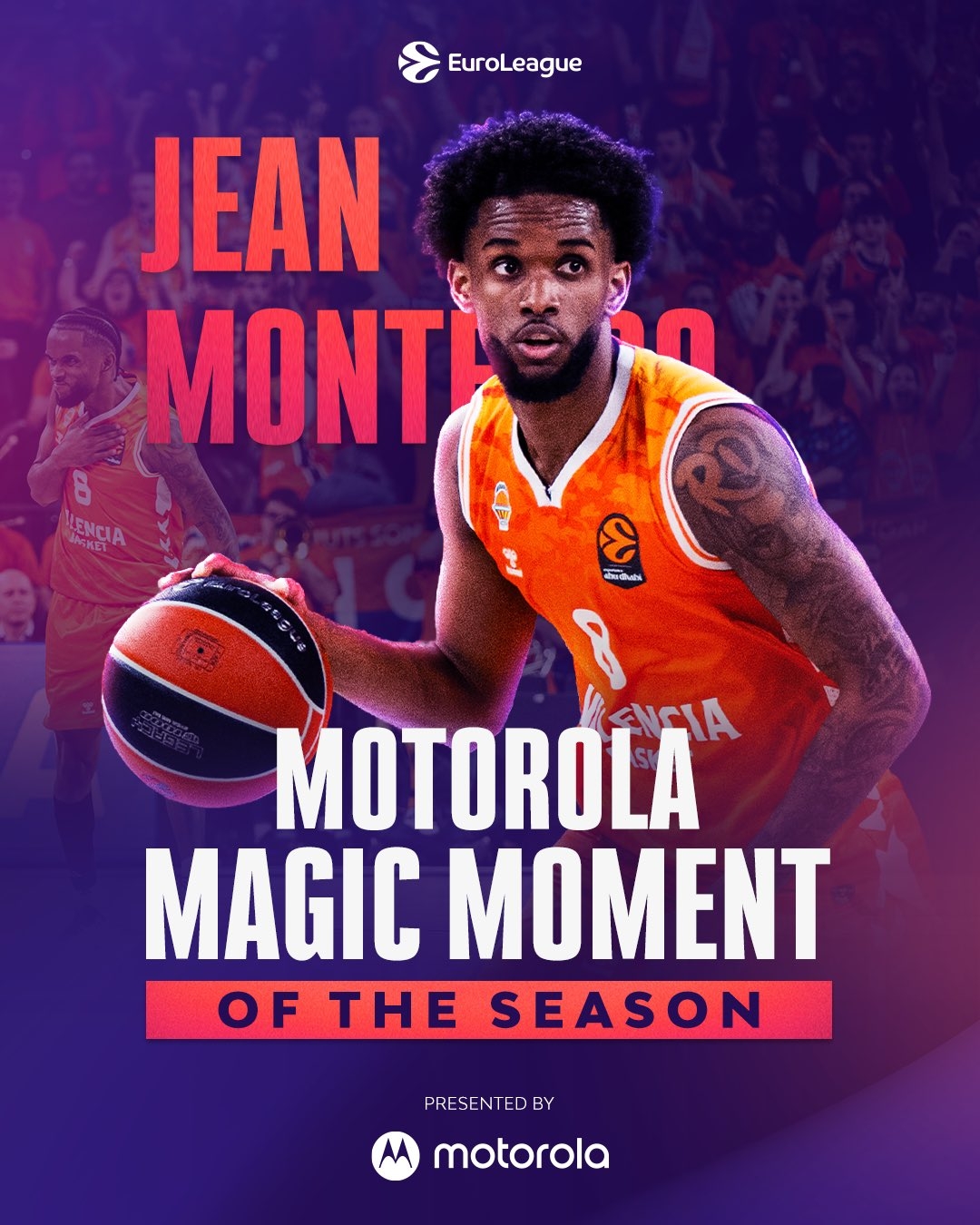 VALÈNCIA. Una jugada del jugador dominicano del Valencia Basket Jean Montero en la prórroga del partido de la jornada 27 de la Euroliga contra el Hapoel Tel Aviv a domicilio ha sido elegida por los aficionados como la mejor de la competición bajo el reconocimiento de ‘Momento Mágico Motorola de la Temporada 2025-26'.
