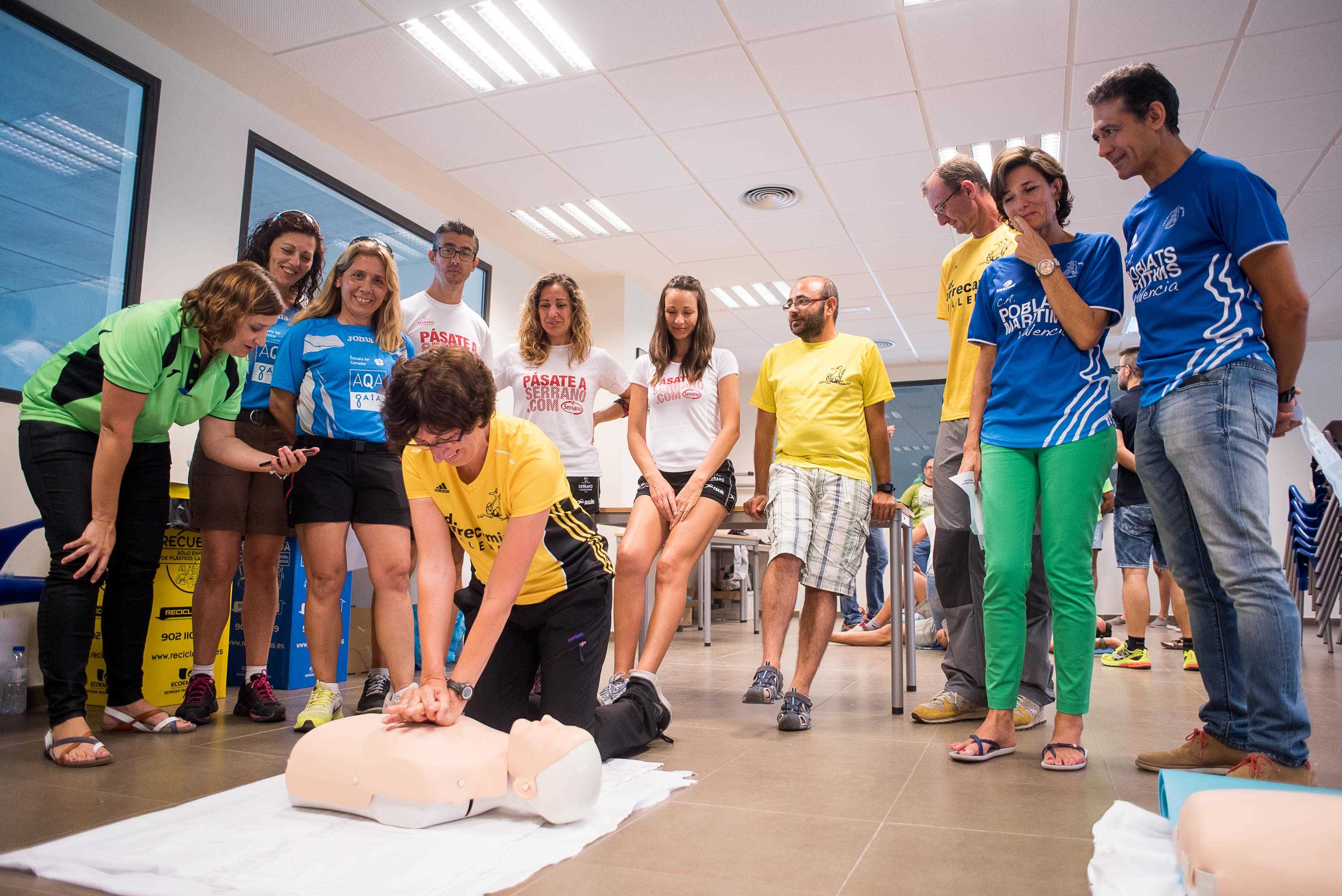 El curso ha sido impartido por cinco especialistas cualificados en la Medicina Intensiva y que son instructores acreditados en RCP a nivel nacional, con la colaboración de la Sociedad Valenciana de Medicina Intensiva. Tras una primera parte de teoría básica, los corredores practicaron durante dos horas bajo la supervisión de estos instructores cómo reanimar cardiopulmonarmente a una persona, así como el uso de un desfibrilador semiautomático con simuladores.