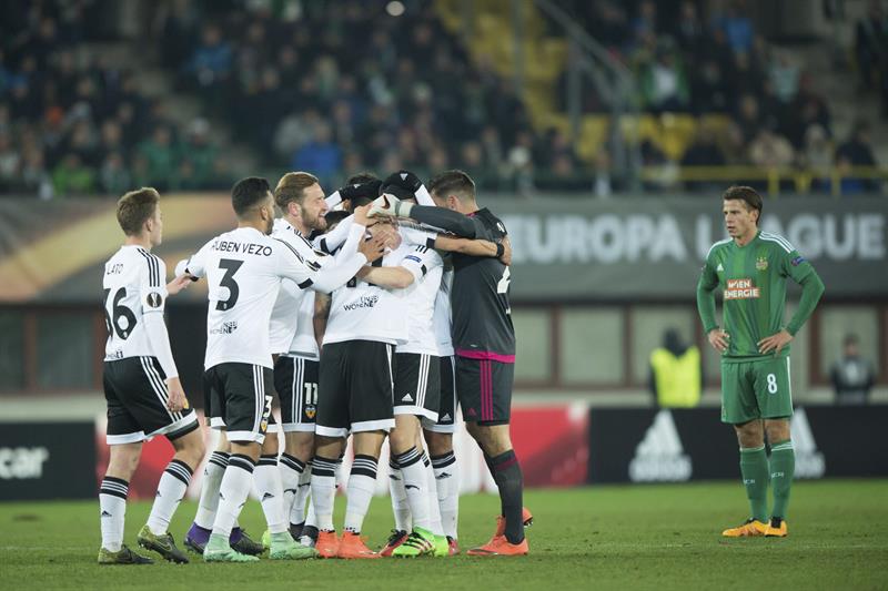 VALENCIA. El Valencia CF resolvió con autoridad su visita a Austria y se impuso por 0-4 al Rapid Viena gracias a los goles de Rodrigo Moreno, Feghouli, Piatti y Vezo. Con este triunfo, los de Gary Neville reafirman su superioridad durante toda la eliminatoria y ya esperan a su siguiente rival en los octavos de final de la Europa League.