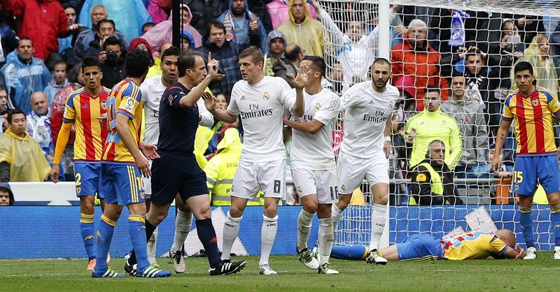 El colegiado no anuló un gol en claro fuera de juego de Benzema y posteriormente, cuando mejor estaba el Vaencia expulsó a Rodrigo por una protesta al asistente. Estos aspectos y una pésima primera parte penalizaron al Valencia que cuando quiso en la segunda parte ya no llegó a tiempo.