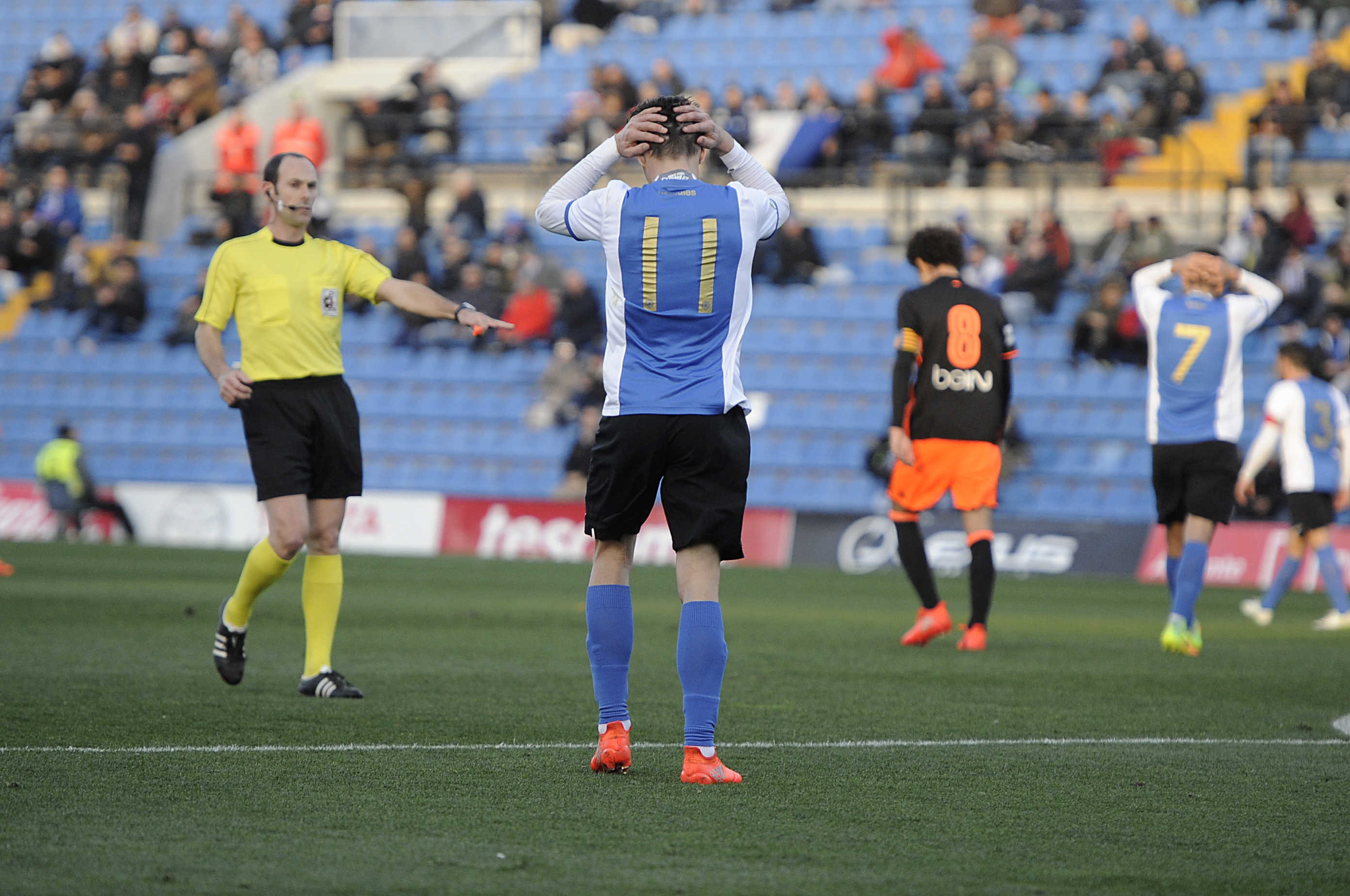 Los de Tevenet dominaron en el primer tramo del partido, disfrutando de alguna ocasión clara como un remate en el área pequeña de Berrocal que detenía un Sivera que en el ecuador de la primera mitad le sacaba a Álvaro Salinas el disparo dentro del área con el que el joven valor del Hércules trataba de cerrar una contra conducida con mucha calidad por él mismo. Pero poco a poco, el Valencia Mestalla empezó a robar el protagonismo a los blanquiazules, rozando el gol en una contra conducida por Araujo en la que Salinas le sacaba un peligroso disparo desde la frontal a Eugeni y especialmente al borde del descanso cuando Nacho Gil remataba por encima de la portería un centro franco desde la izquierda de Sito.