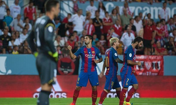 Barcelona: Bravo; Sergi Roberto, Piqué, Mascherano, Digne; Sergio Busquets, Rakitic, Denis Suárez; Messi, Luis Suárez y Arda.