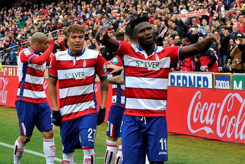 A renglón seguido marcó el Granada el 1-0 en una acción fraguada en un fuerte disparo desde fuera del área de Rubén Rochina en un buen contragolpe rojiblanco, siendo Success quien aprovechó el rechace de Sergio Rico, que ni blocó el balón ni lo despejó bien, para marcar libre de marca el 1-0.