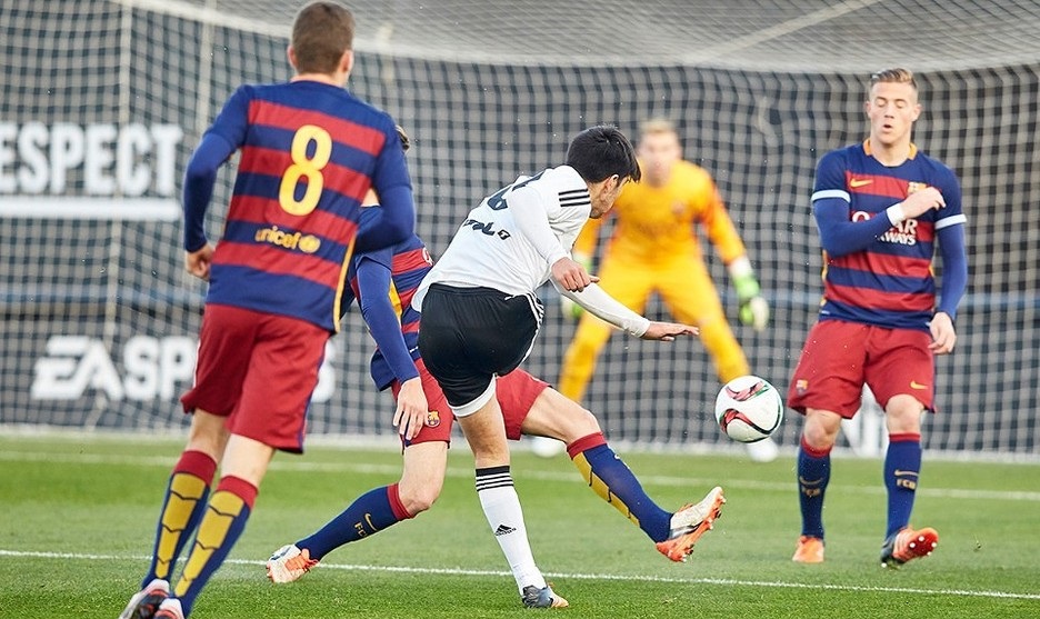 El Valencia Mestalla saltó al tendido verde del Mini Estadi con personalidad. El conjunto dirigido por Curro Torres presionó la salida de balón de los azulgrana y dificultó el juego de los locales. Gracias a la intensidad que los blanquinegros imprimieron a su juego, se hicieron rápidamente con el control de la posesión. Un factor que permitió a los nuestros acercarse al área rival y crear peligro aunque sin concretar sus llegadas. Eran los mejores minutos del Valencia Mestalla cuando, en el 26’, llegó el tanto de Cámara para el Barça B tras una buena pared con Mújica en la frontal.