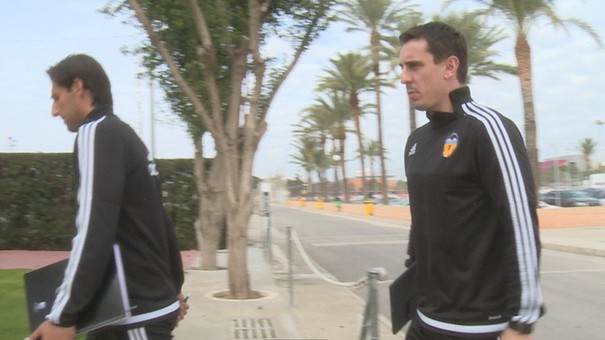 Gary Neville dirige su primer entrenamiento en el Valencia