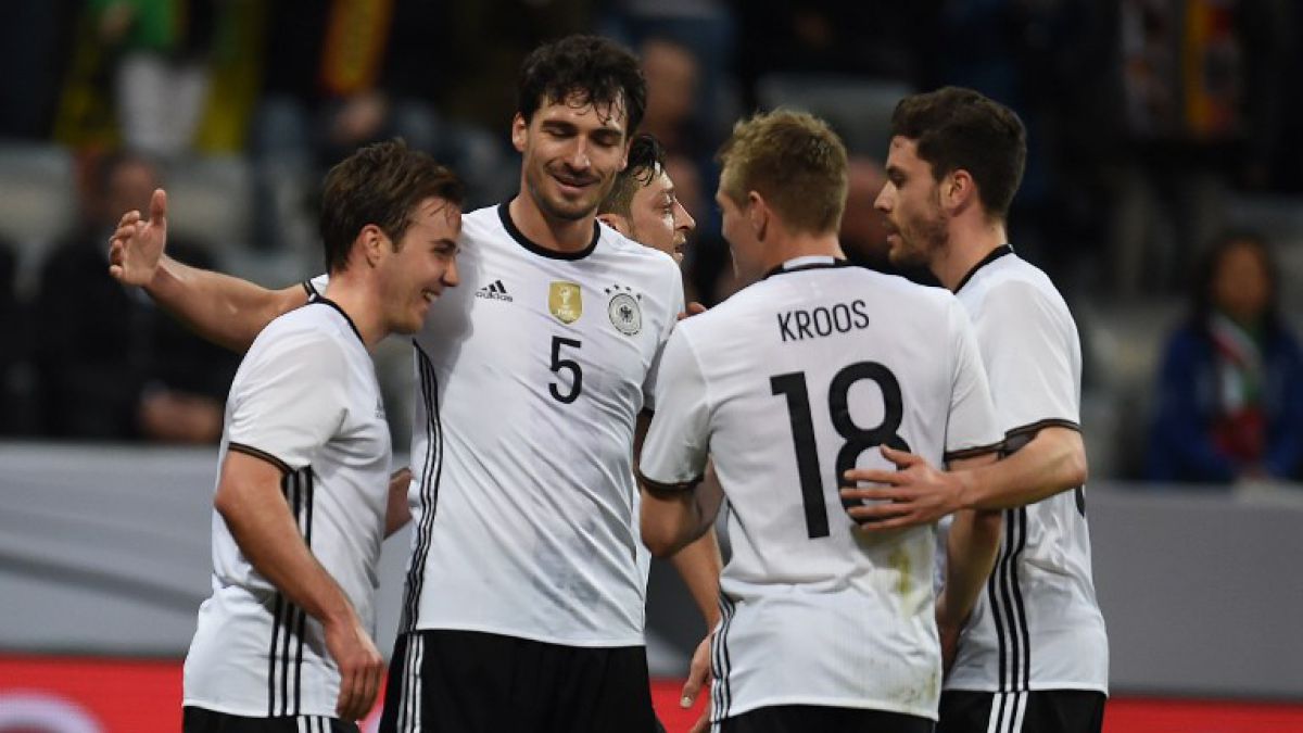 Alemania: Neuer; Kimmich, Hummels, Boateng o Mustafi, Héctor; Kroos, Khedira; Müller, Özil, Götze; y Mario Gómez