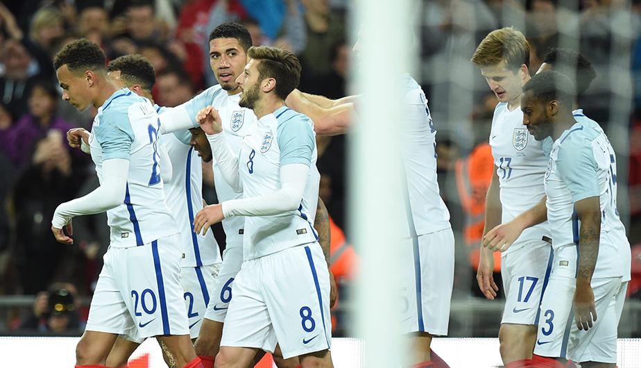 Inglaterra: Hart; Walker, Cahill, Smalling, Rose; Dier, Wilshere, Rooney; Lallana, Kane, Vardy.