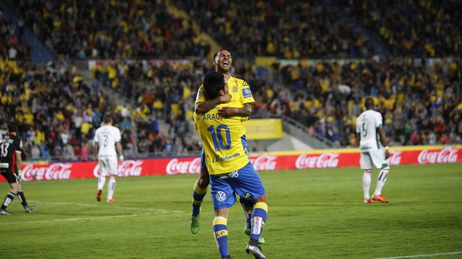 Las Palmas: Javi Varas; Míchel Macedo, David García, Bigas, Dani Castellano; Roque Mesa; Momo o El Zhar, Vicente Gómez, Jonathan Viera, Prince Boateng; y Livaja.