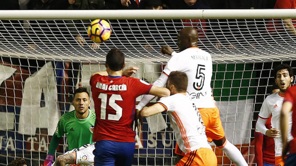VALENCIA. El jugador del Valencia CF, Eliaquim Mangala, ha comparecido en zona mixta del estadio El Sadar para analizar el empate de su equipo contra el CA Osasuna y que les deja a un punto de los puestos de descenso a Segunda División.