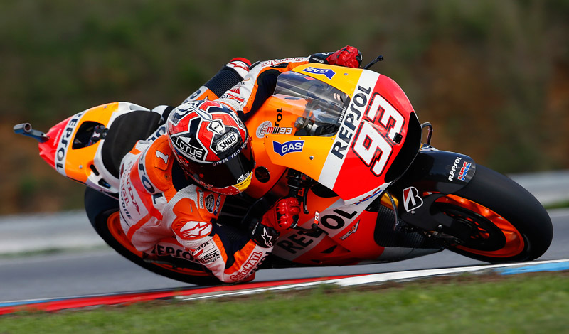 El catalán encontró el hueco perfecto entre las motos de Valentino Rossi (Yamaha) y Pol Espargaró (Yamaha) para hacer el tiempo más rápido y superar a Jorge Lorenzo (Yamaha), quien había dominado en el trazado checo durante todos los libres disputados el fin de semana y se encontraba batiendo sus propios registros vuelta tras vuelta.