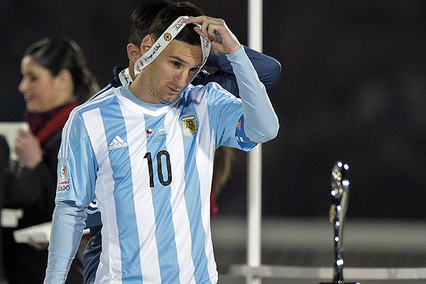 Chile se impuso por 4-2 en los penaltis, después de sendos fallos del propio Messi (que lanzó el primero, después de que fallara el chileno Arturo Vidal) y Lucas Biglia.