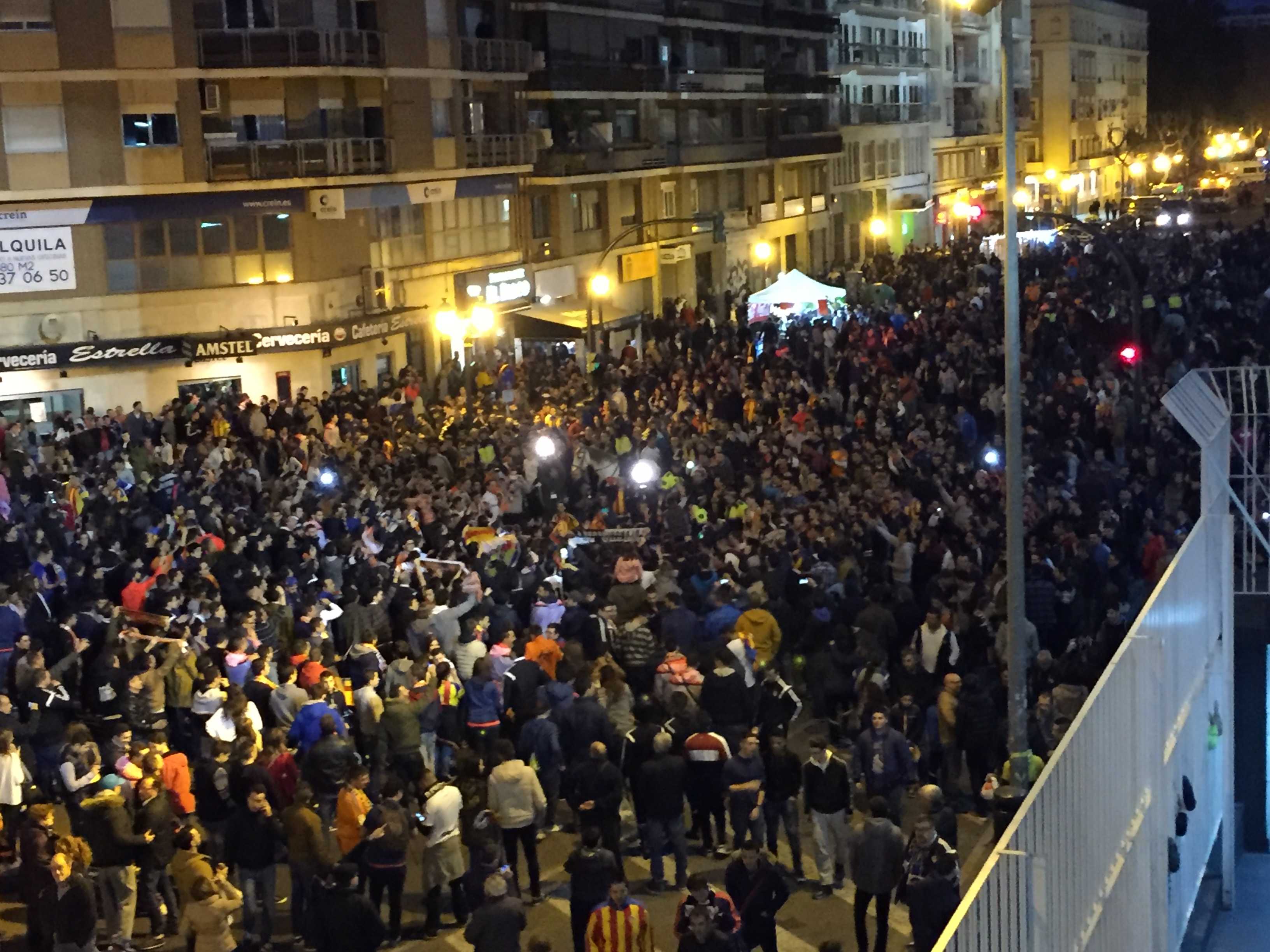 VALENCIA. La afición del Valencia nunca falla y ha recibido al equipo como en las grandes ocasiones para animarles da cara al importante encuentro ante el Espanyol.