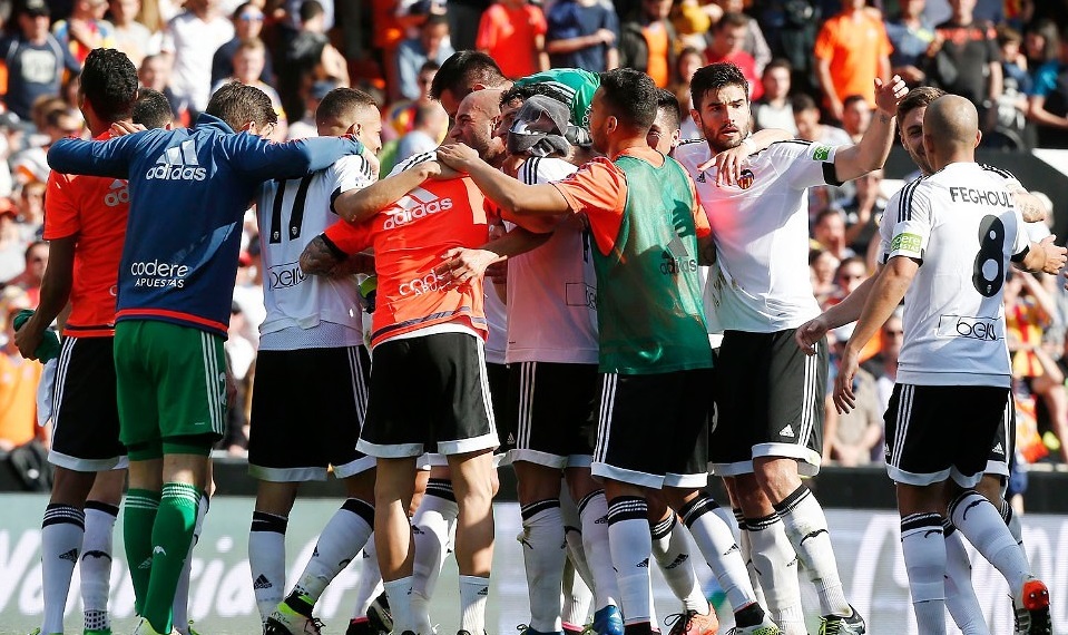 Al descanso los valencianiastas merecieron irse con varios goles de ventaja. De hecho, la última jugada fue una triple oportunidad. Mina fintó en el área y su disparo se estampó en el palo, el rechazo lo recogió Rodrigo que le regaló a Parejo una gran pelota que Rico evitó que fuera el segundo y el balón le cayó a la derecha a Siqueira que la sacó por encima de la portería. Vicandi pitó el final del primer acto y Mestalla se rompió las manos a aplaudir a los suyos. Les aplaudió por correr, por jugar al fútbol, por querer, por haber hecho un gol más que el rival. Mestalla aplaudió porque por fin tuvo un equipo de fútbol que le representaba en el césped.
