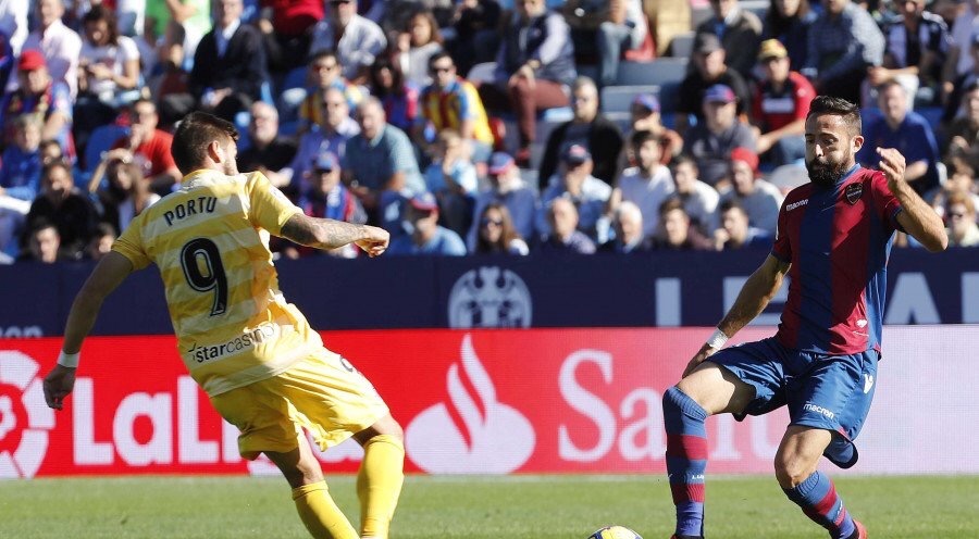 Salió con un ánimo distinto el Levante tras el descanso, que imprimió más intensidad a su juego y consiguió encerrar en su campo al Girona y acercarse por primera vez con peligro al área rival.
