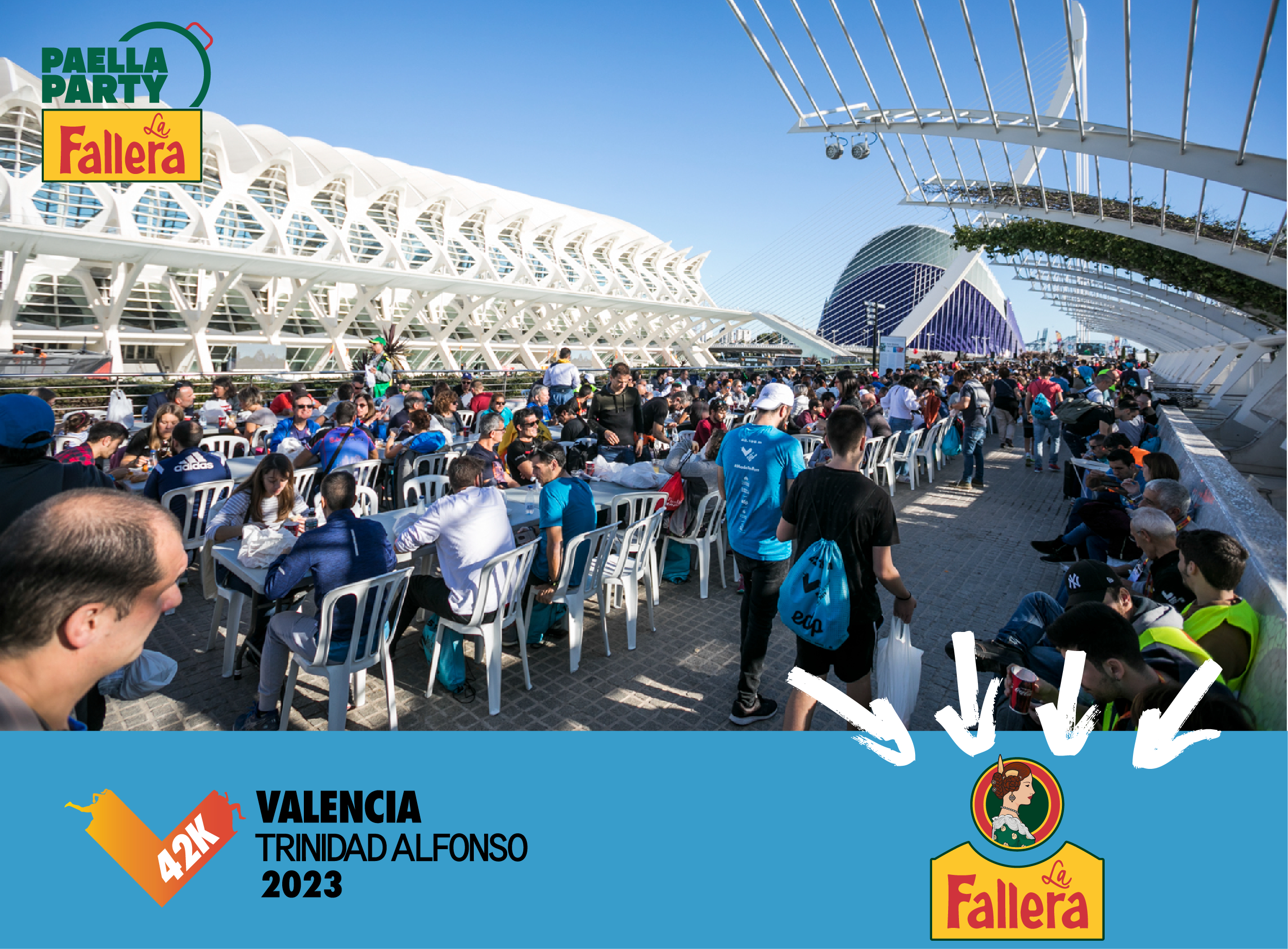 La Paella Party La Fallera será gratuita para todos los inscritos al Maratón Valencia, que podrán acceder enseñando su pulsera, y tendrá lugar el 2 de diciembre en la plaza del Agua de Feria Valencia, situada en la entrada del pabellón 5 (donde se celebrará ExpoDeporte Valencia). Además, se pondrán a la venta próximamente tickets para acompañantes.