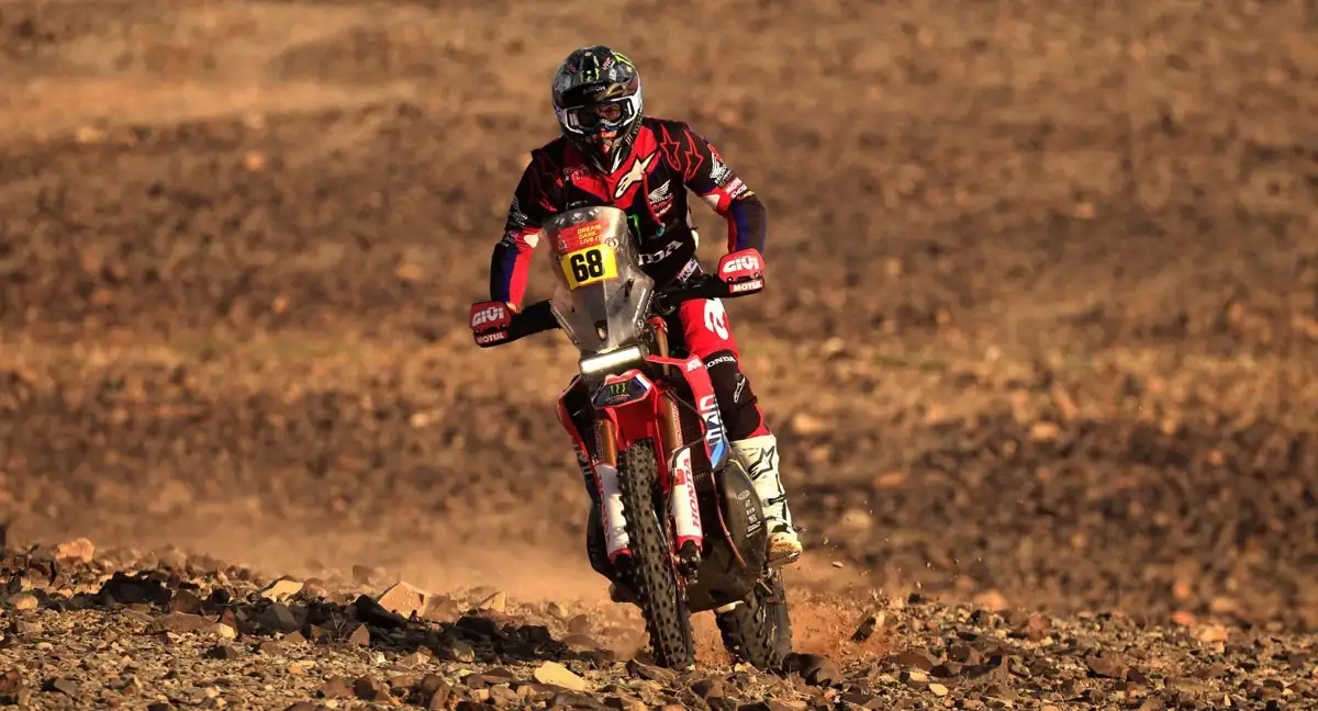 La segunda parte de la etapa maratón en motos dejó a Sanders como protagonista, al sufrir una grave caída en las dunas en el kilómetro 130 de los 368 km cronometrados del día. Según el propio piloto, se habría roto la clavícula y el esternón, por lo que en el que era líder hasta este miércoles se cae al 99% de la lucha por el 'Touareg'.