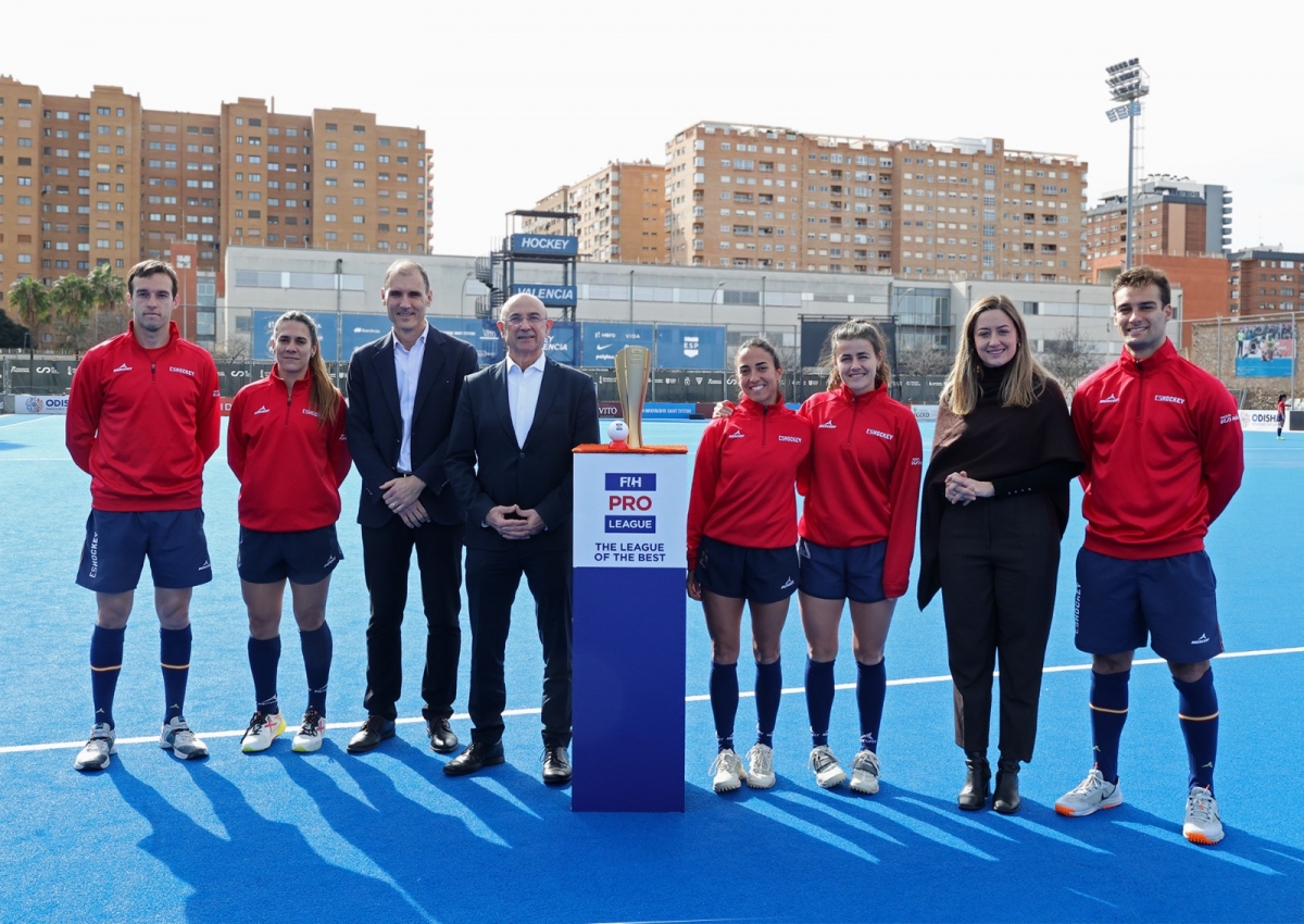 VALÈNCIA. Este martes, la Federación de Hockey de la Comunidad Valenciana celebró la presentación oficial de la FIH Pro League 2026, que se disputará del 05 al 10 de junio en el campo de hockey del poliesportiu Verge del Carme-Beteró. Un evento internacional que contará con la participación de España, Países Bajos e Inglaterra que se verán las caras en el cuadro masculino, y Bélgica, Alemania y España en la categoría femenina.