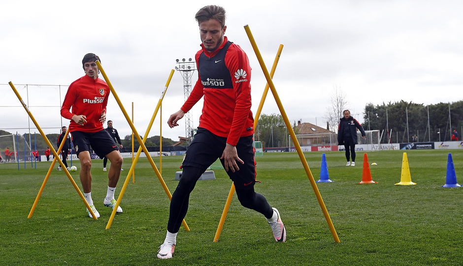 Un día después de recuperar al montenegrino Stefan Savic, de vuelta al trabajo con el grupo tras seis encuentros de baja por una lesión muscular en el gemelo, Simeone también dispone ya de Saúl. Los dos completaron toda la primera parte del entrenamiento con el grupo, aunque después por precaución no participaron en el partido.