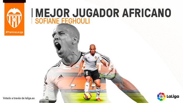 VALENCIA. Sofiane Feghouli ha recibido el galardón de la Liga BBVA que le designa como mejor jugador africano de la competición la pasada temporada.