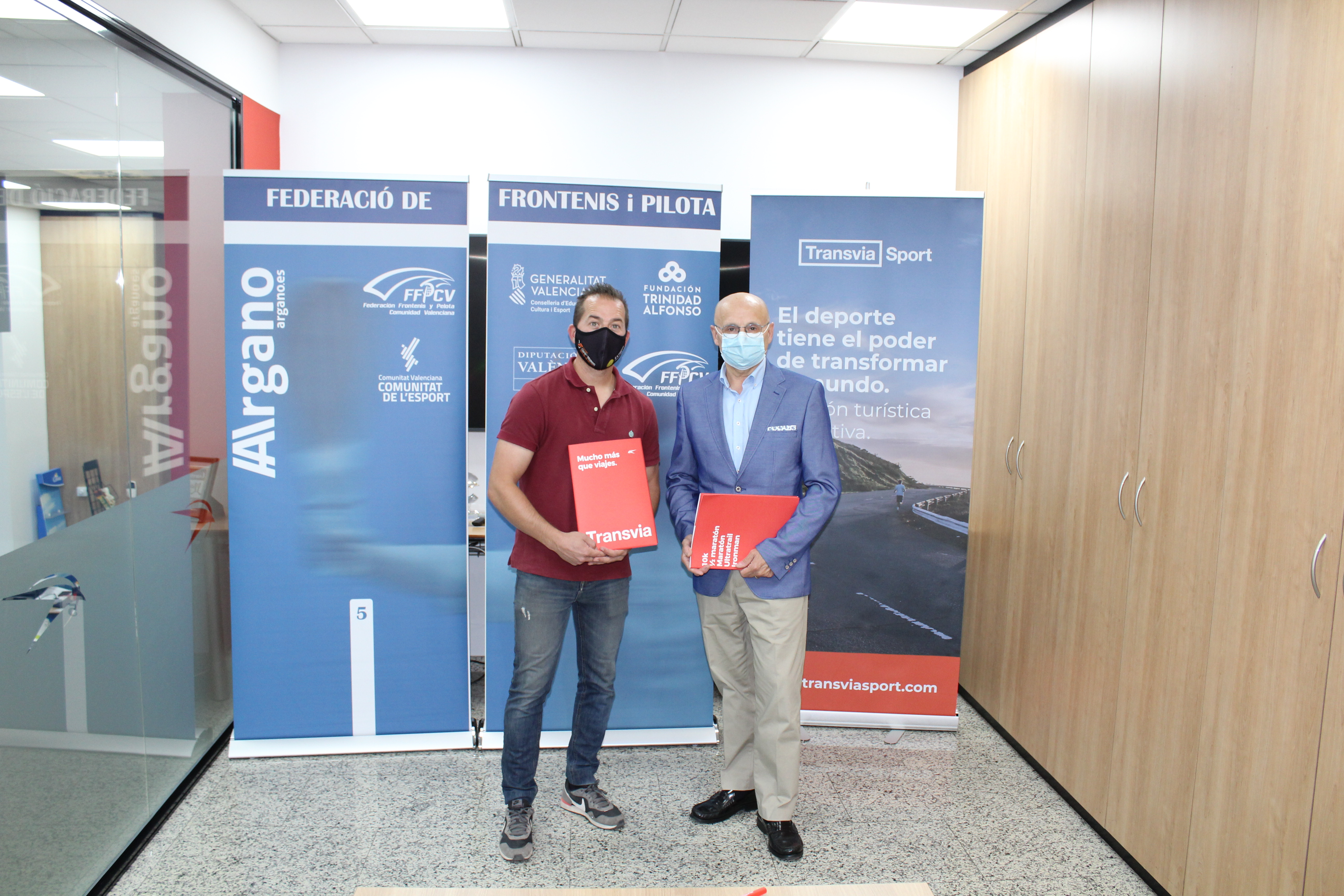 VALÈNCIA. El Director General de Transvia – Mucho más que viajes, José Más Cardona, y el Presidente de la Federación de Frontenis y Pelota de la Comunidad Valenciana, Miguel Montalbán, firmaron la pasada semana el acuerdo de colaboración entre ambas entidades. De esta forma, la agencia de viajes valenciana, a través de su marca especializada en turismo deportivo, Transvia Sport, se convierte, durante los próximos tres años, en la agencia de viajes oficial de la FFPCV.