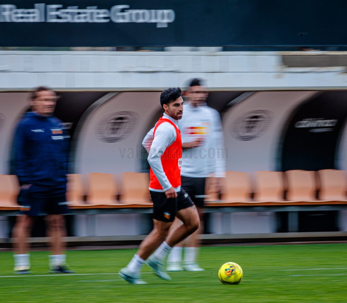 Carlos Corberán pudo contar en una parte de la sesión con Cömert, que no pudo participar en los partidos contra el Mallorca y Girona por su lesión en la musculatura abdominal sufrida durante el partido frente al Elche y entrará de forma progresiva a los entrenamientos durante la semana.