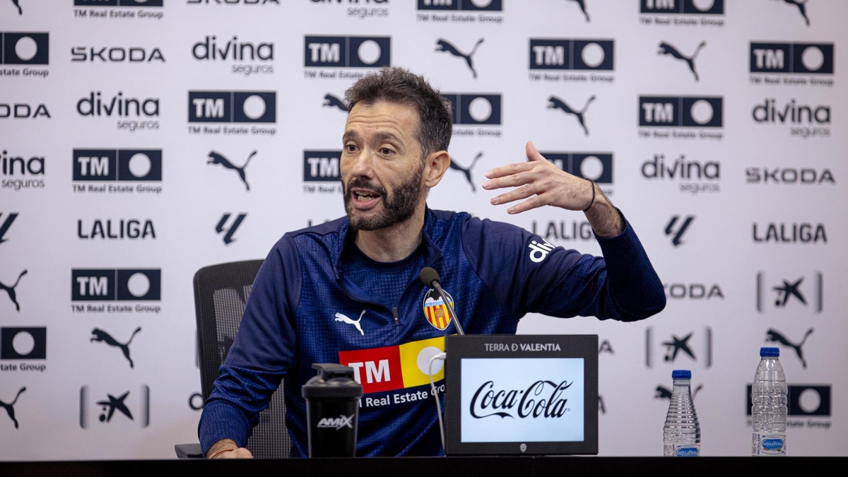 VALÈNCIA. El entrenador del Valencia CF, Carlos Corberán, ha comparecido en rueda de prensa en la ciudad deportiva de Paterna para valorar la eliminatoria de octavos de final de la Copa del Rey contra el Burgos CF.