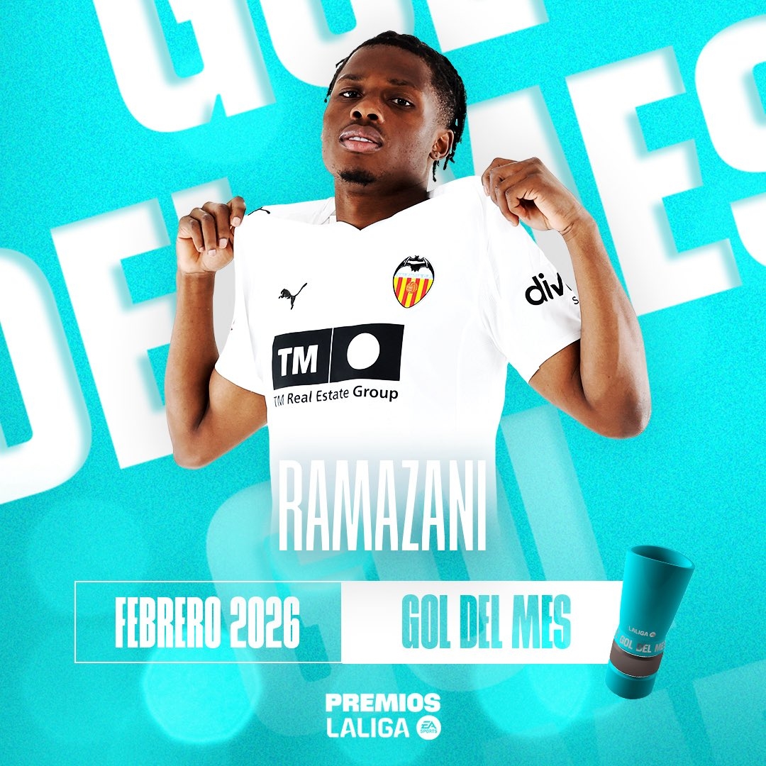 VALÈNCIA. El gol de Ramazani en el derbi, designado como el mejor del mes de febrero.