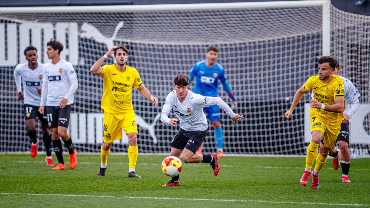 El VCF Mestalla buscaba el tercero y en cada contra generaba peligro con la presencia constante de Mario Domínguez y la velocidad de Marc Jurado, Víctor JR y Mario Guilabert apoyados también por Benama y Javi Navarro.