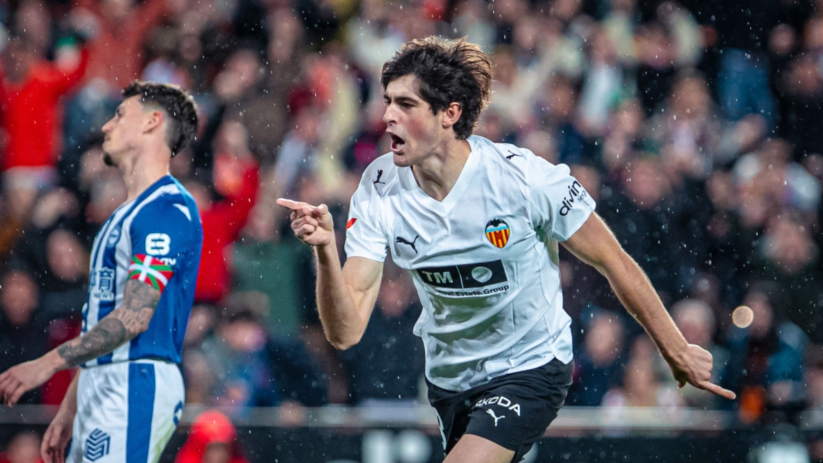VALÈNCIA. Javi Guerra volvió a ser protagonista en Mestalla al anotar el primero de los goles de la victoria ante el Deportivo Alavés. El mediocentro de Gilet mostró su alegría en VCF Media por una victoria importante que permite al equipo escalar puestos en la clasificación.