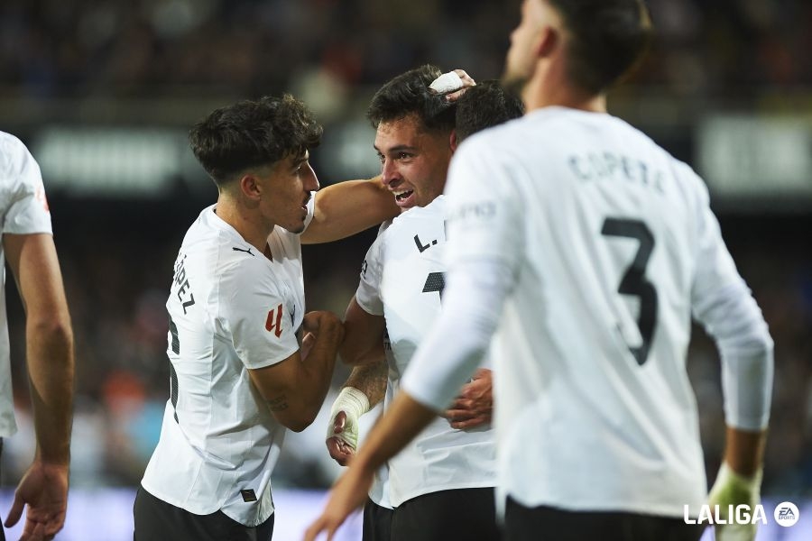 Incidencias: Partido correspondiente a la decimotercera jornada de LaLiga EA Sports disputado en el estadio de Mestalla ante 46.302 espectadores. En la previa del partido se guardó un mniuto de silencio en memoria de todas las mujeres asesinadas por violencia machista y por los abonados del Valencia, José Ernesto Benavente Albert y Ramón Vivó López, con más de 50 años de antigüedad.
