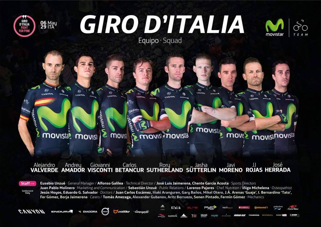 Tendrá a su lado al cuarto de la última edición de la ronda italiana, el costarricense Andrey Amador, a los rodadores Jasha Sutterlin y Rory Sutherland, y en la montaña también tendrá el apoyo de José Herrada, Javi Moreno y Carlos Betancur, así como a José Joaquín Rojas y Giovanni Visconti, que ganó el premio de la montaña en 2015.