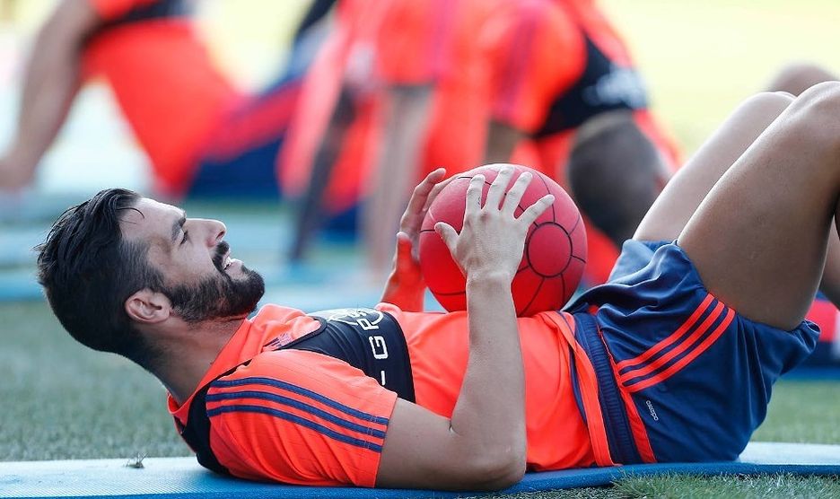 La gran ausencia de la sesión con el grupo ha sido la de Paco Alcácer. El delantero de Torrent se ha quedado en el interior de las instalaciones de la ciudad deportiva de Paterna para recuperarse en el gimnasio de unas molestias en su tobillo.