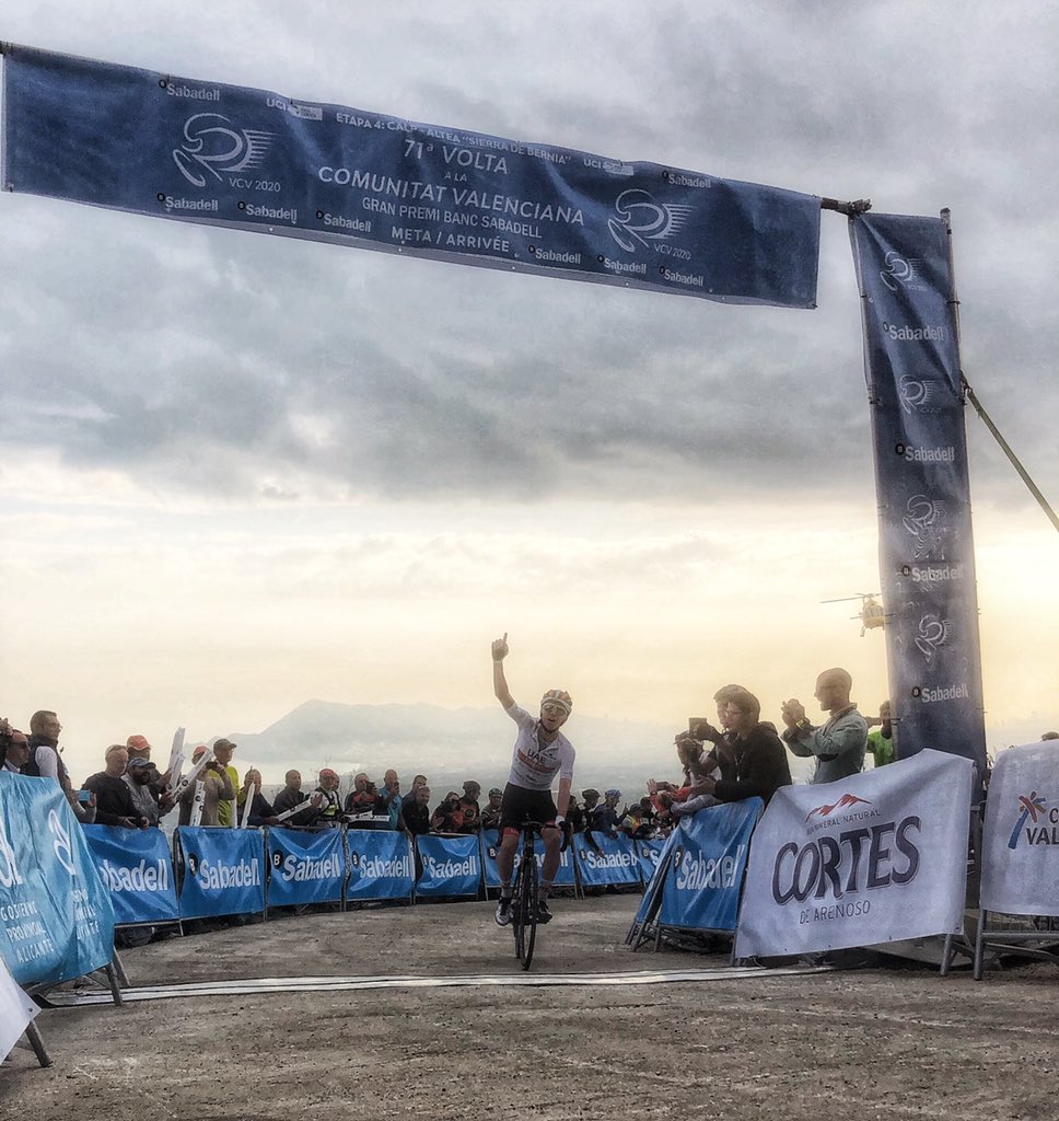 El joven ciclista arrancó a tres kilómetros de meta, en el primer ataque de los favoritos, y supo mantener su renta hasta el alto de la Sierra de Bernia, de primera categoría, para ganar en solitario su segunda etapa en esta edición y recuperar el jersey amarillo.