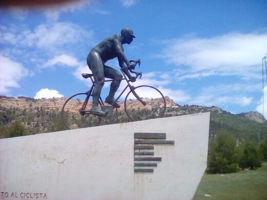 El monumento, ubicado en el término municipal de Castalla, fue creado en 2003 por el escultor alicantino Vicente Ferrero Molina, ex-director del Museo de Bellas Artes de Alicante del Consell Valencià de Cultura, en 2003 y simboliza el esfuerzo del ciclista por alcanzar la cumbre.